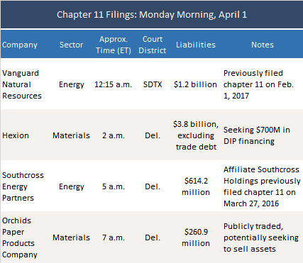 In the first seven hours of April 1, four separate companies with combined debt of nearly $6 billion filed for chapter 11 protection:pic.twitter.com/89RFXl2U7h