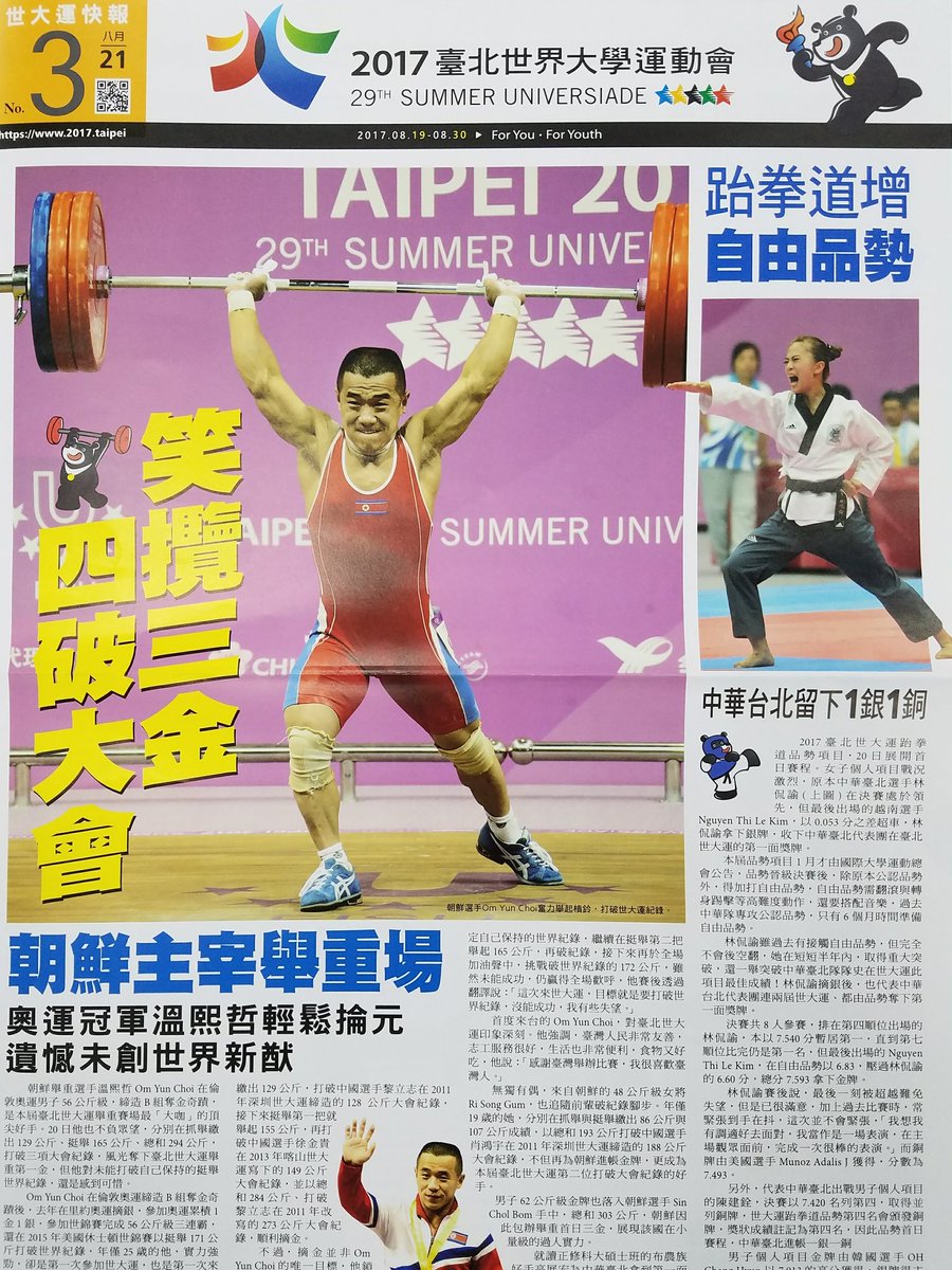 #PRK sweeps day1 of#Taipei#Universiade!! Learn more about the 1st medal winners of the Games: http://www.iwf.net/2017/08/21/prk-sweeps-first-day-of-taipei-universiade/ …#weightlifting#goldpic.twitter.com/WUbUmT4EmR