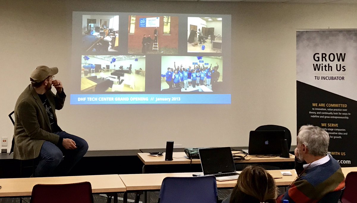 @andrewcoy launches his founder story to an engaged group. It’s a non-straight line from the fish house to the rec-to-tech house to the White House & back around again. HT@DHFBaltimore >> 6th Anniversary Showcase 1/17/19