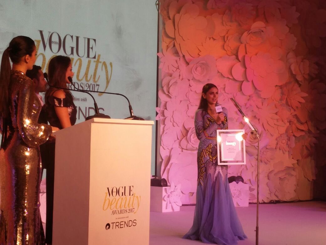 @aditiraohydari wins#FlawlessFace of the year award from@VOGUEIndia#VBAxTrends - Congratulations Aditi!