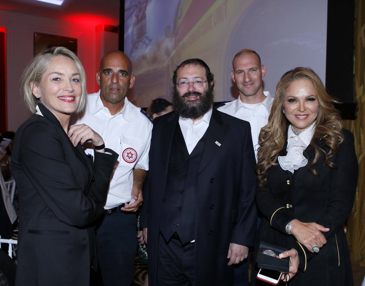 Sharon Stone, Ori Shacham, MDA Chair of the Board Rabbi Avraham Manela, Naty Regev, and Dina Leeds. [Photo: Orly Halevy.]pic.twitter.com/3rrGtxSBLJ