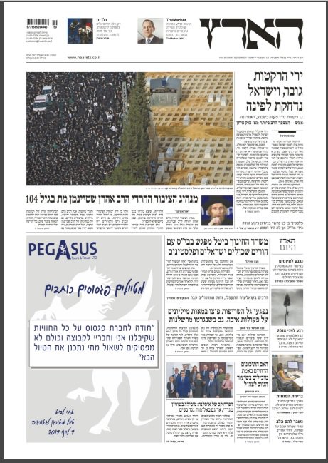 ישראלה על הרב שטיינמן: שער + 4 עמודים ידיעות: חצי שער + 3 מעריב: רבע שער + 3 יתד נאמן, המודיע, המבשר: שער + מי סופר הארץ: תמונת שער גדולה + עמוד אחד + ביקורת טלויזיה הפלס: הפניית שער בינונית + שני עמודים + השלמות סיכום: הרב שמואל אוירבך ונתי גרוסמן נותנים פייט לא רע לרוגל אלפרpic.twitter.com/M8GvsEaAaQ