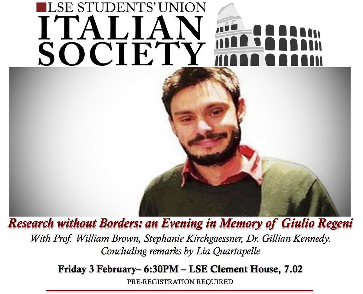 #GiulioRegeni’s tragic disappearance and murder,@LSE_Italians gathers for an evening of remembrance https://www.eventbrite.com/e/research-without-borders-an-evening-in-memory-of-giulio-regeni-tickets-31362506100 …pic.twitter.com/IyNUv7AD8t