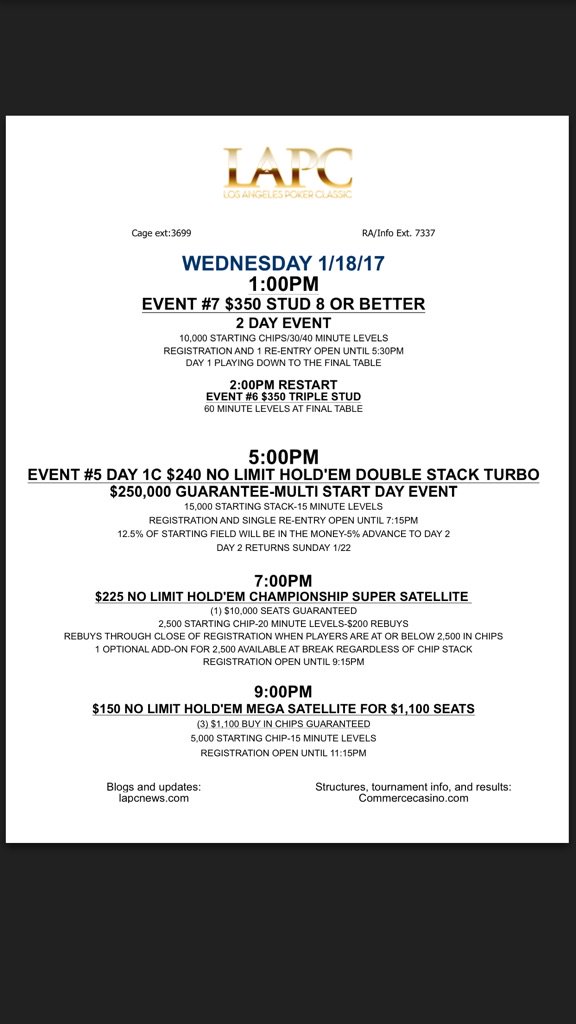 1. Today we have 4 events at 1pm, 5pm, $225 Mega at 7pm, and 9pm $150 Mega. $30,000 Added POTS is underway, Top 100 qualify.