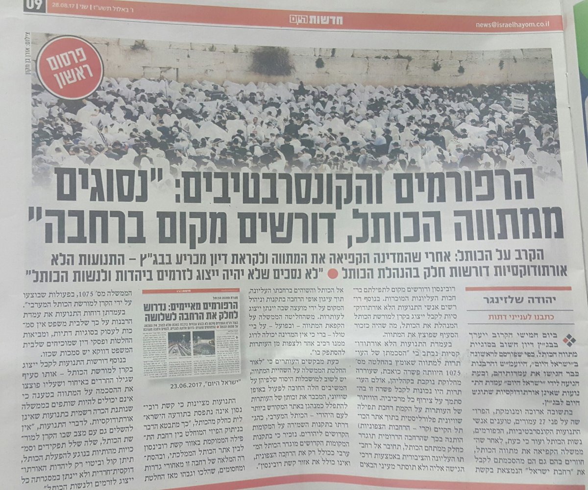 Great story in Israel Hayom: Reform and Conservative movements decide to fight for an egalitarian prayer space in the current plazahttps://twitter.com/judash0/status/902073809959886848 …