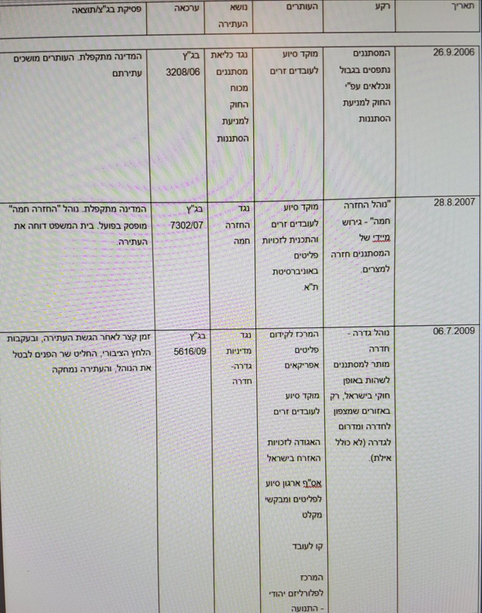 שלום ילדים, הנה רעיון למשחק פסח קליל. מצ"ב רשימת הבג"צים שעסקו במסתננים - מבג"צ "נוהל החזרה חמה" ו"נוהל גדרה חדרה" ועד רואנדה. שימו לב ילדים לעותרים ואנא עזרו לי לגלות אם קיים קשר ביניהם לאיזו קרן. (הח"מ מתנצל על הפיגור הגרפי)pic.twitter.com/ndL4S8uqoB