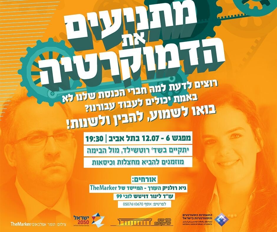 דב חנין, איילת נחמיאס ורבין, יואב קיש, בצלאל סמוטריץ', רועי פולקמן, קארין אלהרר, יגאל גואטה, רוברט אילטוב ואיתן כבל