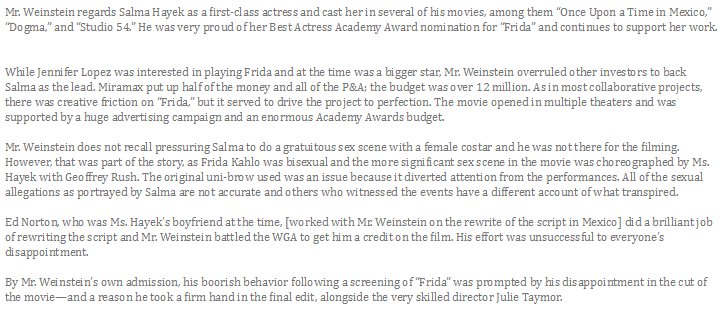 Spokesman for Harvey Weinstein responds to allegations by actress Salma Hayek http://nbcnews.com/thelist pic.twitter.com/DwodeHrwSa