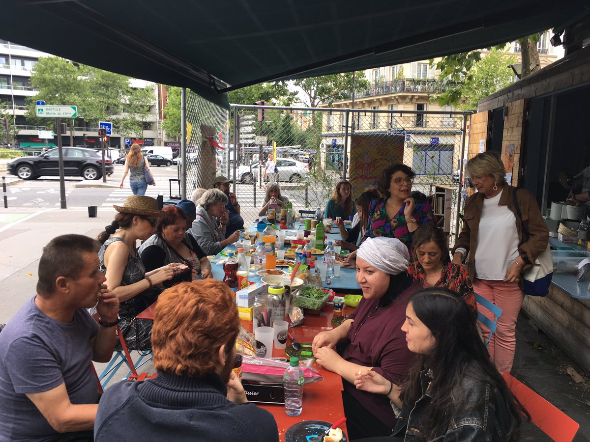 Ajd repas solidaire au kiosque avec les habitants et l asso premier de tablée ! Bonne humeur et convivialité au rdv
