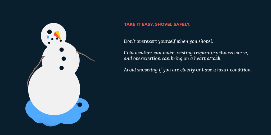 Avoid overexertion. Take breaks during shoveling and seek help if you're short of breath.