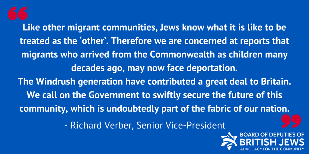 Board of Deputies calls on the Government to secure the future of the Windrush generation in Britain:
