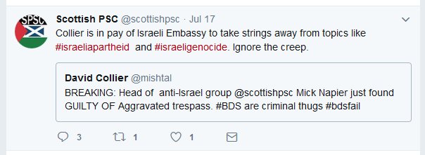 @scottishpsc Mick Napier just found GUILTY OF Aggravated trespass.#BDS are criminal thugs#bdsfailಧನ್ಯವಾದಗಳು. Twitter ಇದನ್ನು ನಿಮ್ಮ ಕಾಲರೇಖೆಯನ್ನು ಉತ್ತಮಗೊಳಿಸಲು ಬಳಸುತ್ತದೆ. ರದ್ದುಗೊಳಿಸು -