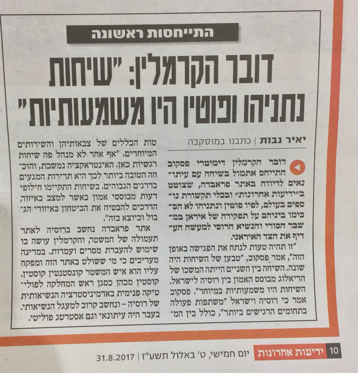 @YediotAhronot כותרת על ׳כישלון׳ פגישת נתניהו ופוטין. התברר שהידיעה התבססה על אתר קונספירציה רוסי. ציפיתם להתנצלות? אז ציפיתם.pic.twitter.com/bR5V4GxwVE