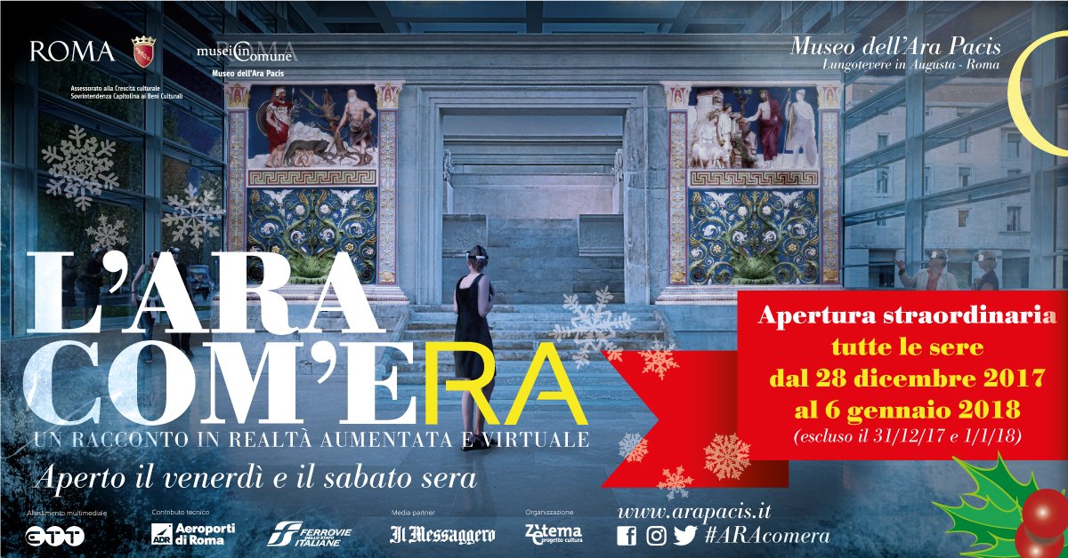 #ARAcomera dal 28 dicembre 2017 al 6 gennaio 2018 (escluso il 31/12/17 e 1/1/18), con spettacoli ogni 15 minuti dalle 19.30 alle 23 (ultimo ingresso ore 22) https://www.facebook.com/events/201791950384688/ …#AraPacispic.twitter.com/ApDECXduT1