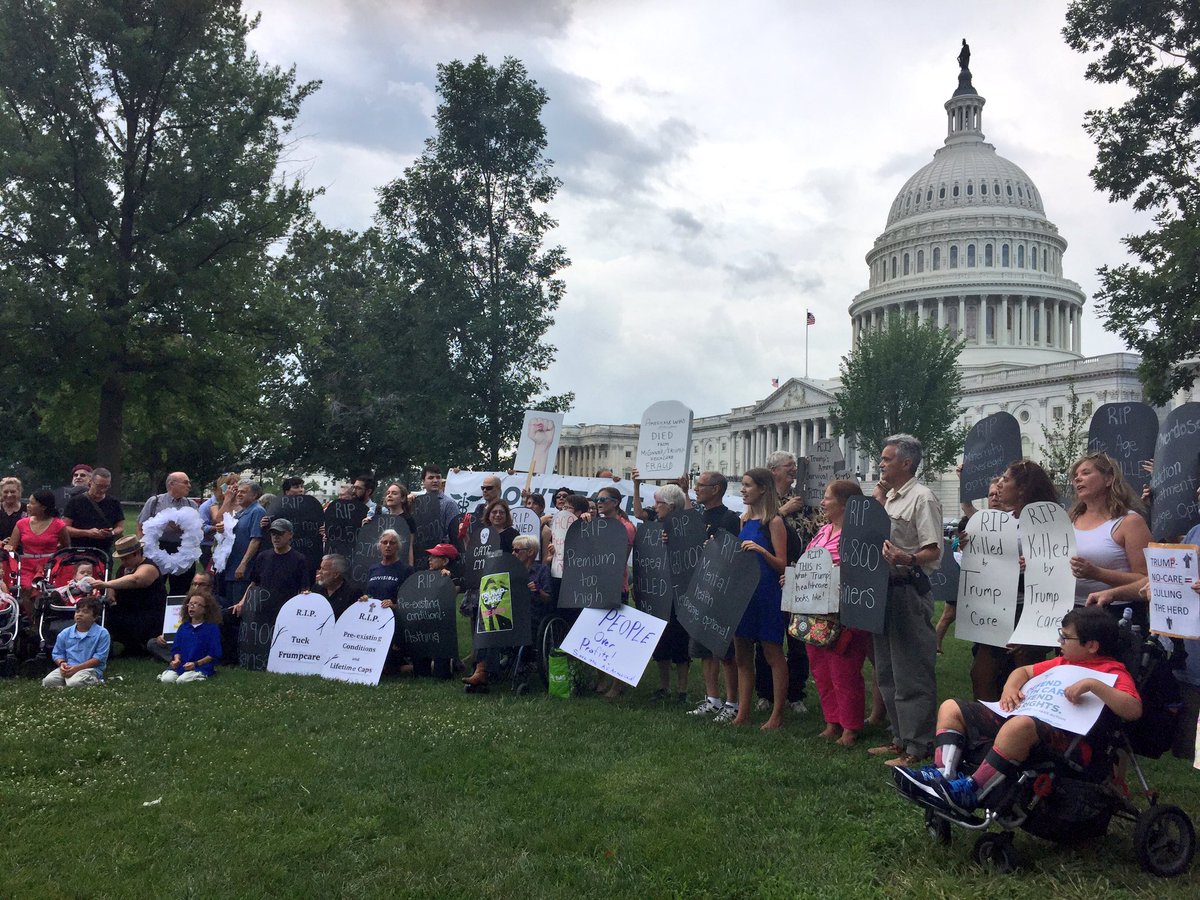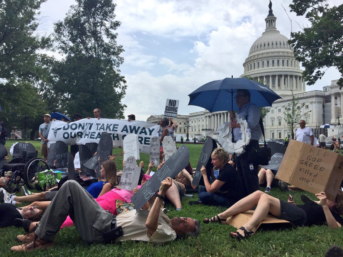 Despite the rain, protestors stage a die-in at the U.S. Capitol to demonstrate the deaths that would result from the harmful GOP bill.pic.twitter.com/uFaJNNeoEd