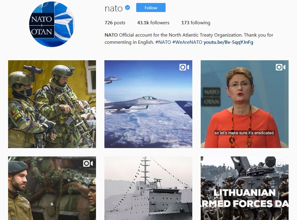 @NATO is in top 10 most active int'l organisations on@Instagram, according to the latest@twiplomacy report. Congrats to our colleagues from#NATO’s social media team! Check out: https://goo.gl/3X24Et#WeAreNATOpic.twitter.com/p9UNKKRm8a