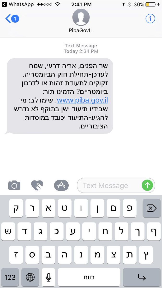מאוד מרגיע שלכבוד חובת המאגר הביומטרי השערורייתי, אריה דרעי (!) החליט לעדכן אותי אישית. עכשיו אני שומע אותו מתנשם מאחורייpic.twitter.com/L7TEjPyJ92