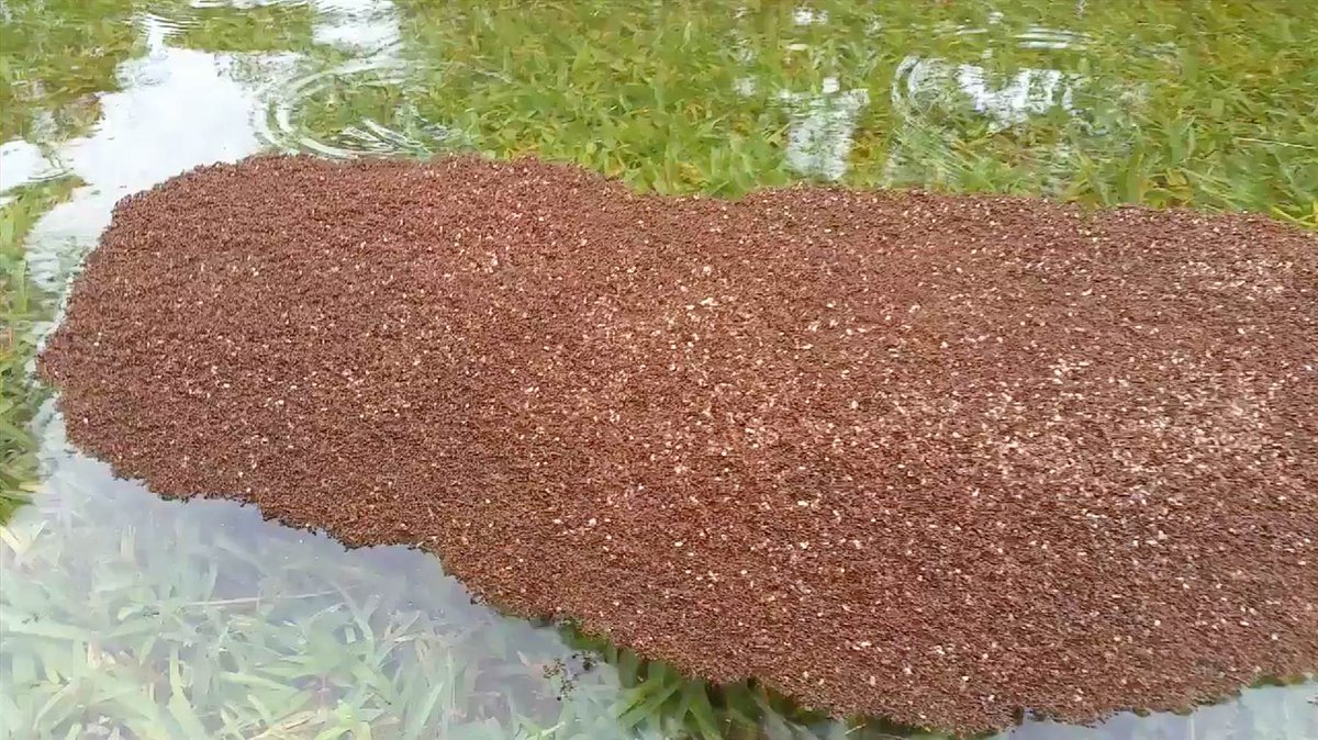 ההצפות בטקסס: סכנה חדשה לאלה שמנסים להיחלץ מהשטפונות: נמלי האש העוקצות יצרו מושבות צפות כדי להגן על המלכה