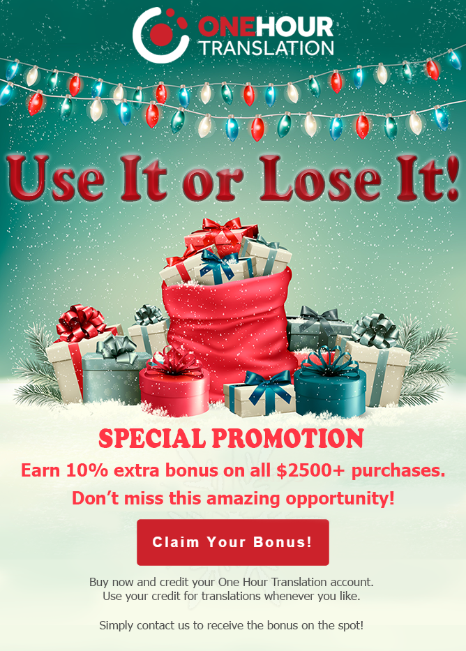 Happy Holidays and warmest wishes from all of us at One Hour Translation!
