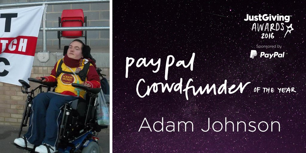 Huge congratulations to Adam Johnson on your award for PayPal Crowdfunder of the Year