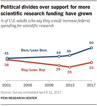 Wide & growing partisan gap in the U.S. over how much gov't should spend for scientific research