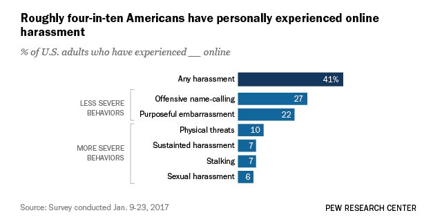41% of Americans have personally experienced online harassment http://pewrsr.ch/2uju9Pv pic.twitter.com/HEtCCDhINL