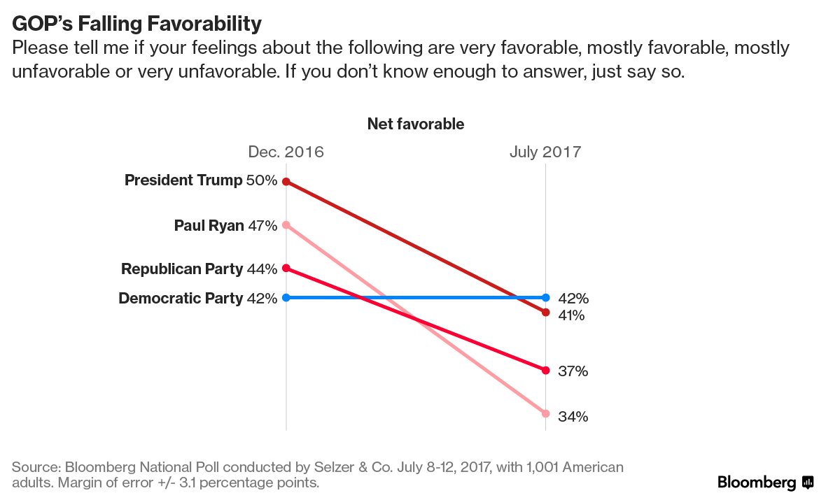 The job Donald Trump is doing with health care: Approve 28% Disapprove 64% (Bloomberg/Selzer & Co., 7/8-12) more: