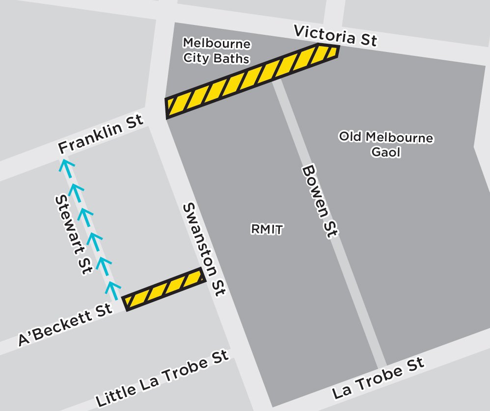 Parts of Franklin & A’Beckett Sts will close next Mon 16 Jan to prepare for major construction of the