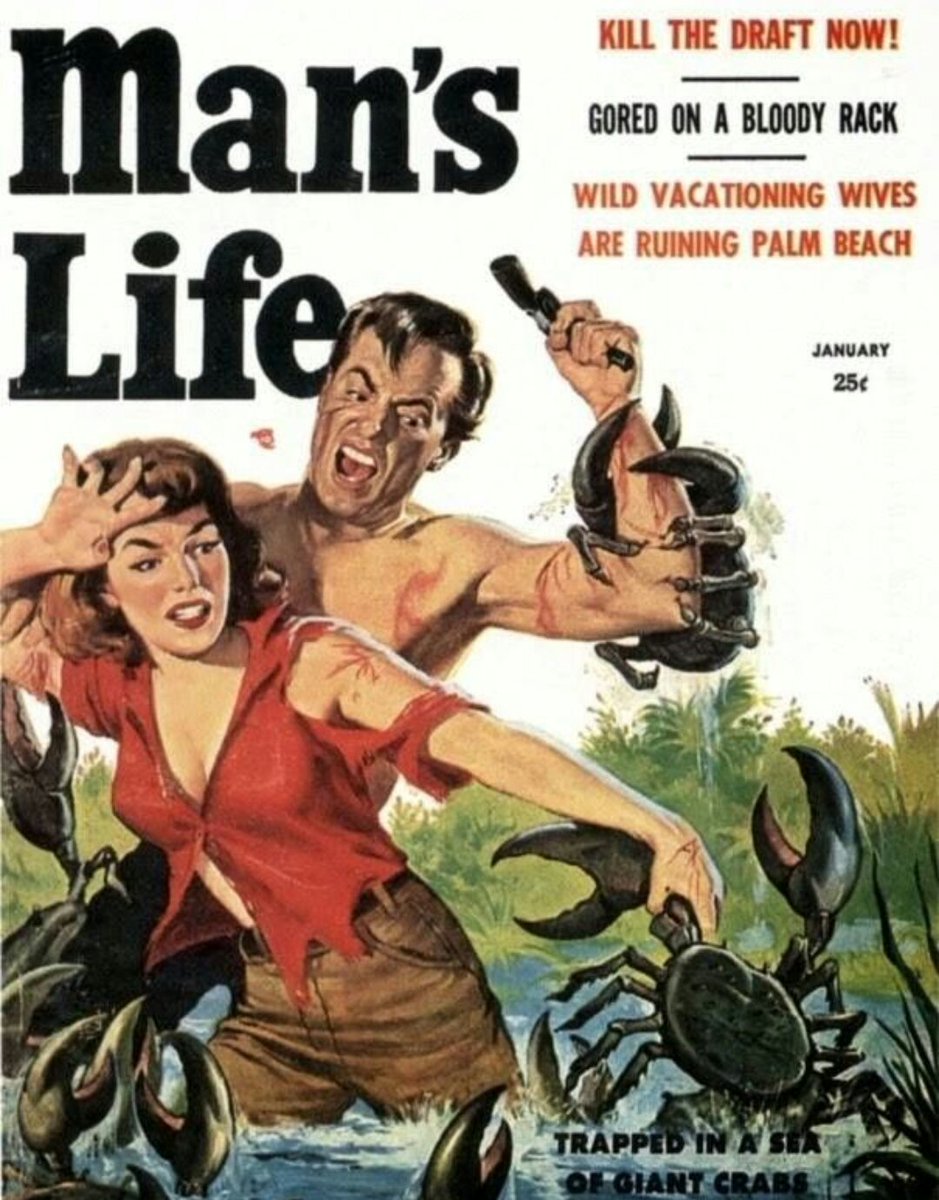 Trapped in a sea of giant crabs! Man's Life, January 1958pic.twitter.com/g6wTFXk1Zg