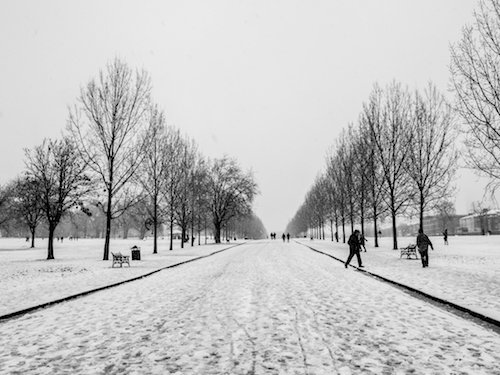 Data point: it hasn't been snowing this much in London since Feb 2012. I took this photo of the frozen lake in Alexandra Palace back then (my highest-rated ever Flickr Explore photo) and haven't been able to repeat it till today.