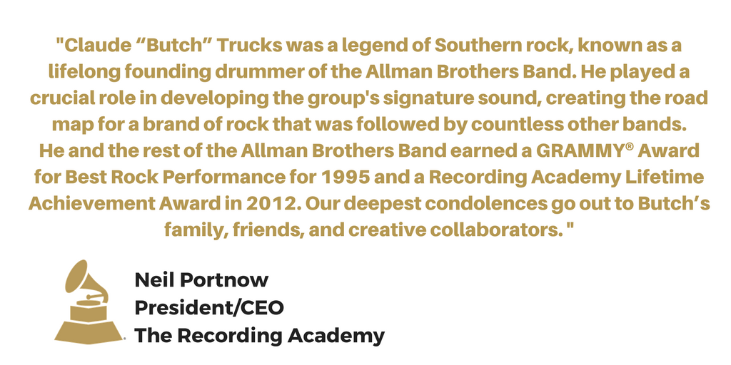 Our deepest condolences go out to Claude “Butch” Trucks’s family, friends, and creative collaborators.