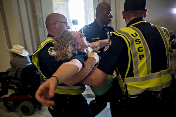 Protesters with disabilities stage die in outside Mitch McConnell's office. MORE OF THIS!
