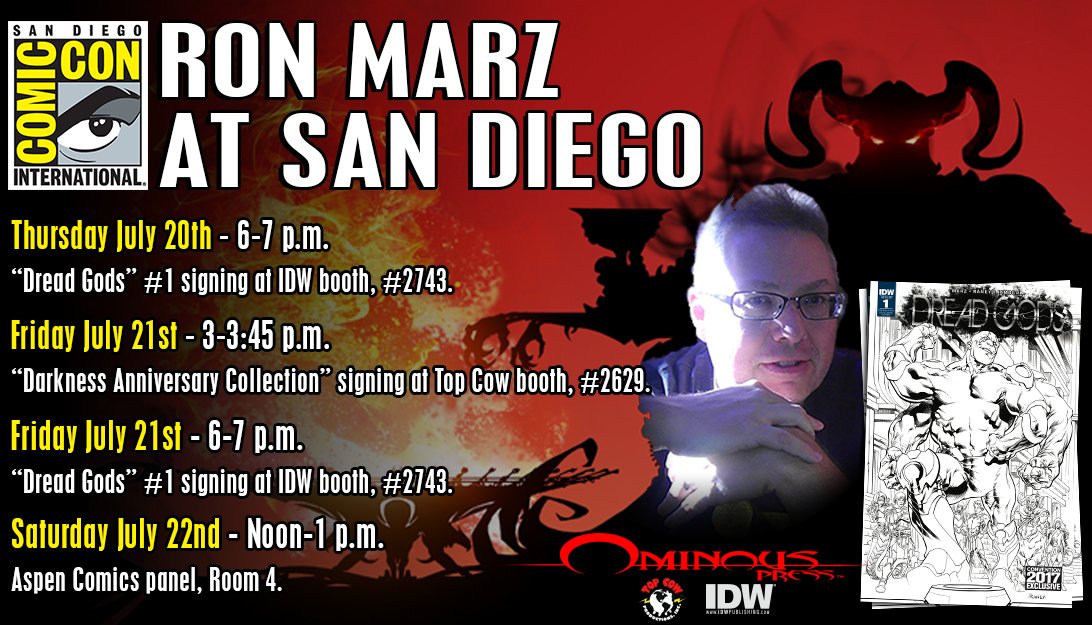 @RonMarz#DreadGods signing at the@IDWPublishing booth (#2743) tonight 6 - 7 local@Comic_Con time!pic.twitter.com/IR7tVYBoLC
