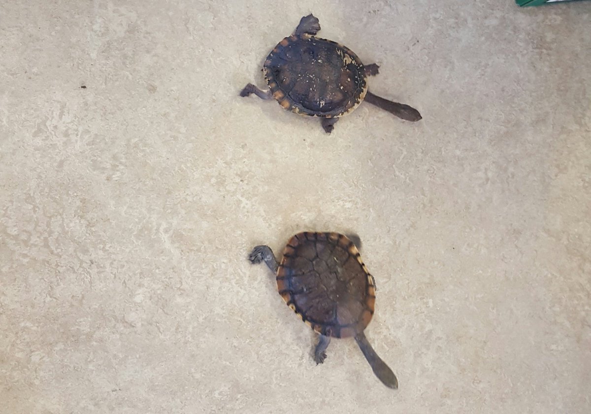 Guess which of these 2 domesticated turtles was just brought in by inspectors? He was awfully skinny under his shell too!