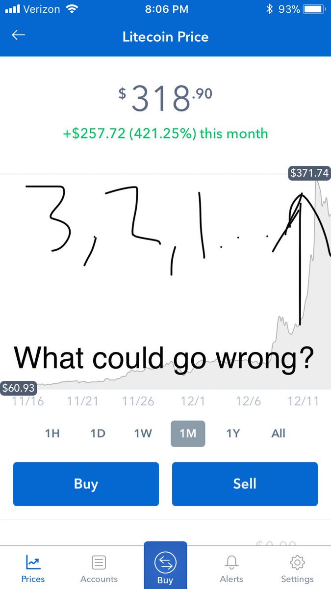 Litecoin has segregated witness, lightning network, and soon working atomic swaps. How many people who just bought it for $350+ have heard of any of those things? 😬