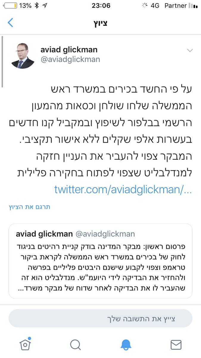 כמה שהדבר הזה מטורף, עד המדינה שלמה פילבר עושה לייק למי שאומר שתיק ארבעת אלפים הוא תפירת תיק.pic.twitter.com/zLrh5uehCa