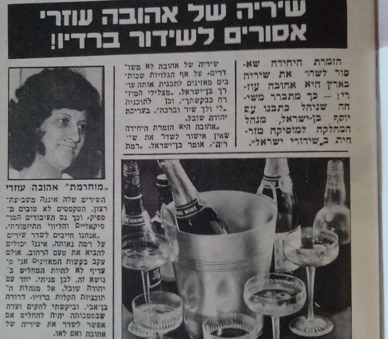 אוגוסט 1977. שיריה של אהובה עוזרי אסורים לשידור ברדיו.