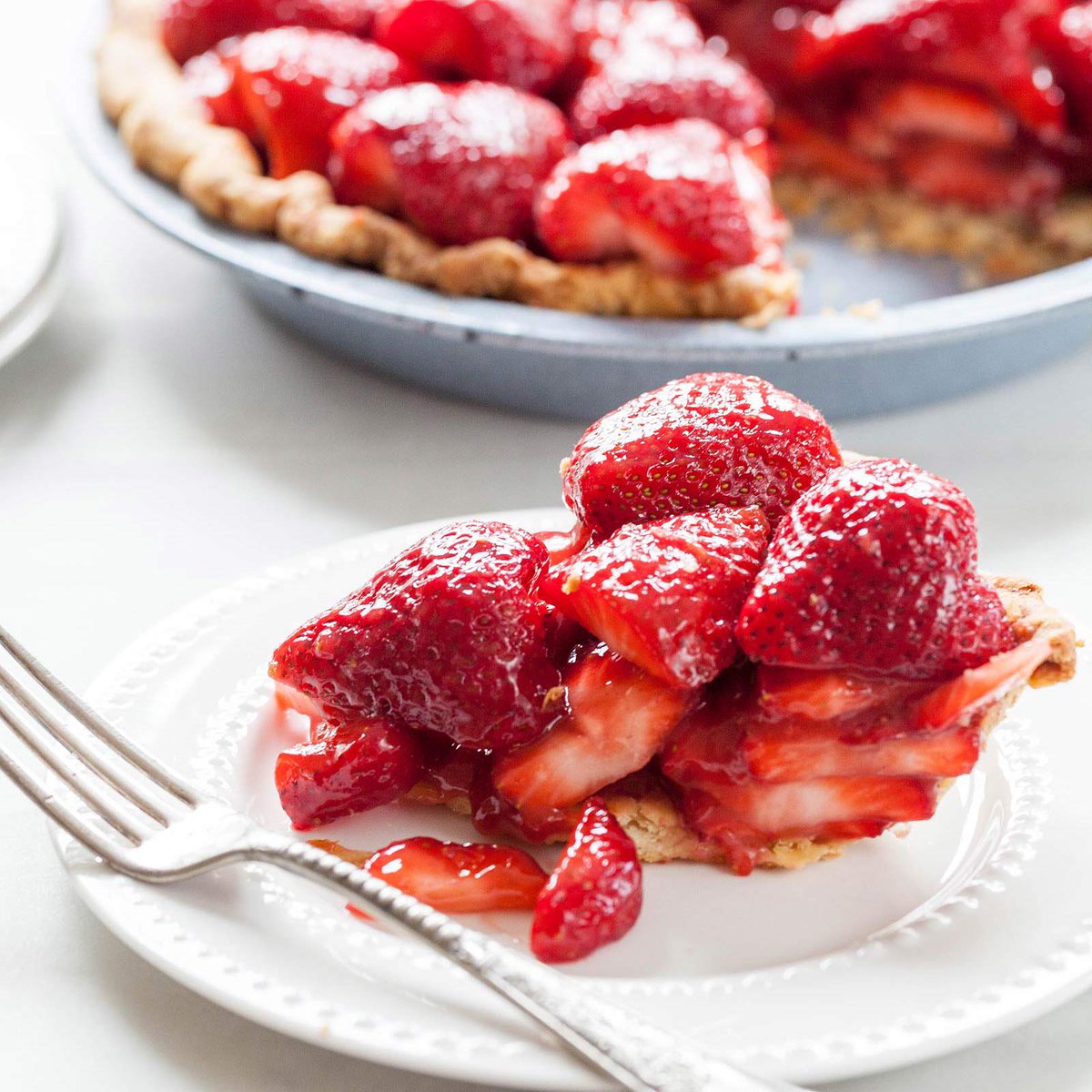 Oh my, Strawberry PIE! No jello base, it's thickened with pectin and cornstarch, a winner from