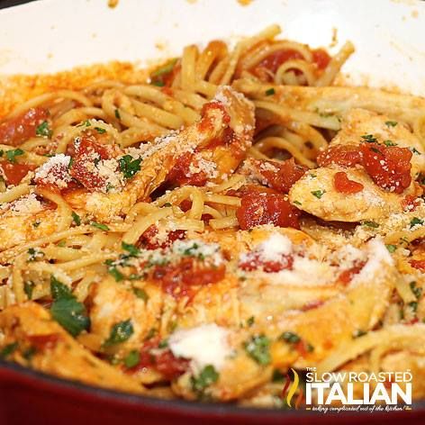 You'll be enjoying this Chicken Parmesan Pasta Toss in no time with this easy recipe! Such vibrant flavor! Recipe: http://tsri.co/2jOwZFz pic.twitter.com/zo33JZieMk