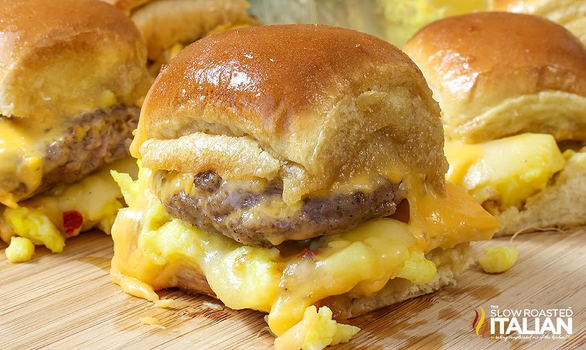 Cheesy Sausage and Egg Breakfast Sliders with your favorite breakfast fixings are perfect on the go!