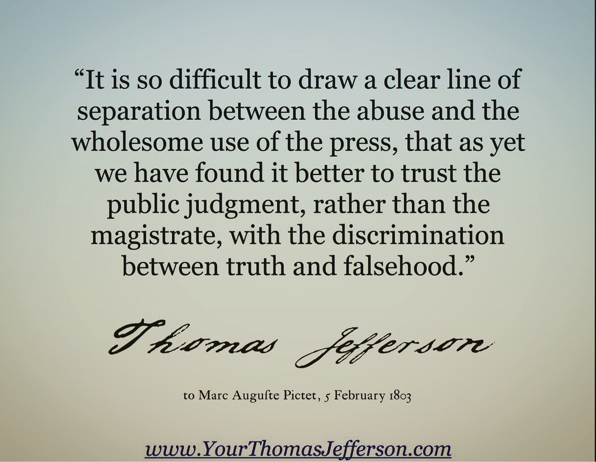 2.5.1803: ”we have found it better to trust the public judgment, rather than the magistrate”