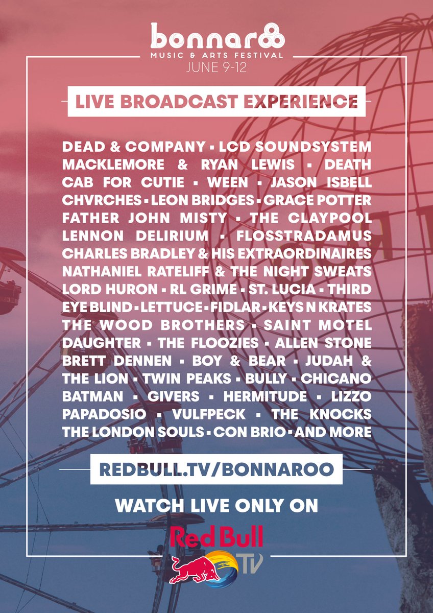 @Bonnaroo! Stream our set on Fri (6/10) at 4:15pm CT via@RedBullTV: http://redbull.tv/bonnaroo#Bonnaroopic.twitter.com/DdpDinyK68