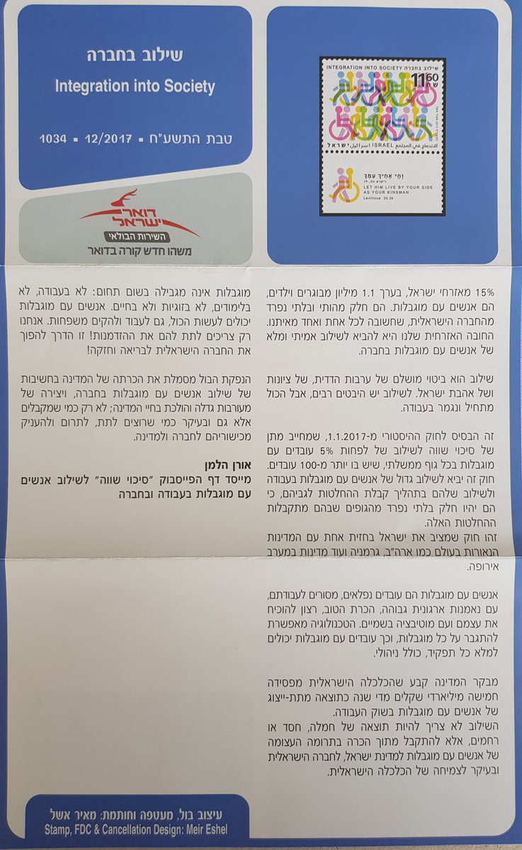 לפני שנה וחצי נפגשתי עם מנהל השירות הבולאי בחברת הדואר. סיפרתי לו על סיכוי שווה והצורך בשילוב של אנשים עם מוגבלות בעבודה ובחברה. סיכמנו שיונפק בול מיוחד. בול של שילוב. והנה- אתמול קיבלתי בדואר את הבול הזה... תודה לירון רצון, המנהל הקודם, לאלחנן שפירא המנהל הנוכחי ולגידי קמינסקיpic.twitter.com/60l3QYLacH