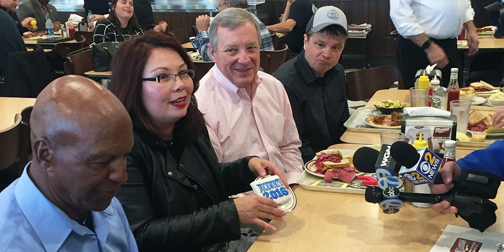 Congresswoman Tammy Duckworth sits down to lunch with Senator Dick Durbin and local elected officials in Pilsen.