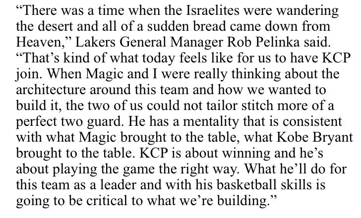 If you missed it, here's Rob Pelinka's introduction of KCP, with a book of Genesis analogy.pic.twitter.com/oVvz5cZLXz
