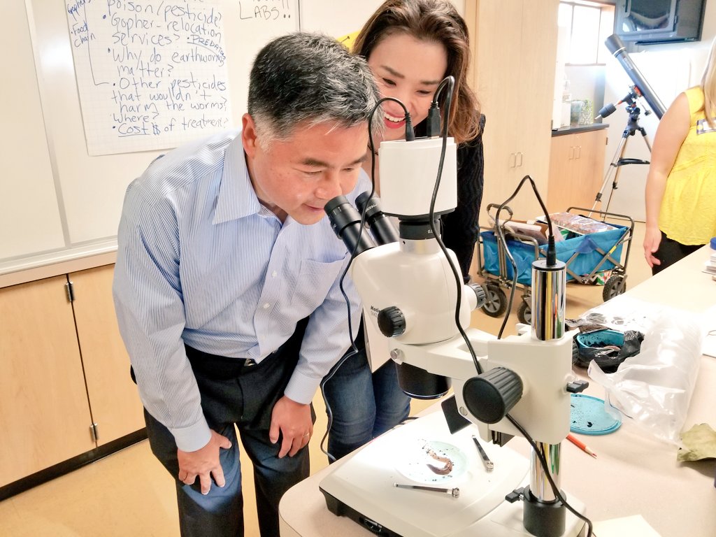 At science lab funded w/ help of Torrance Ed Foundation. Looking at worms w/ Betty. The couple that stares at worms together, stays togetherpic.twitter.com/LynmAiNX4Q