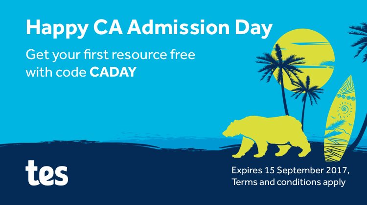 CA Admission Day offer ends midnight Sept 15! New buyers get 1st resource free upto $5 use 'CADAY'. http://ow.ly/7fro30f1P0a