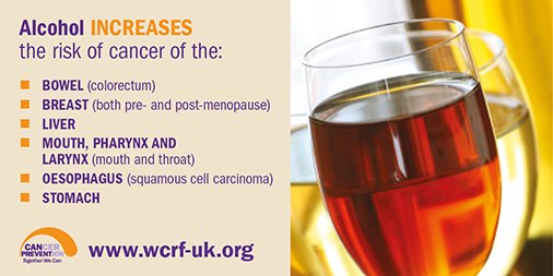 There's strong scientific evidence that alcohol increases the risk of six common cancers