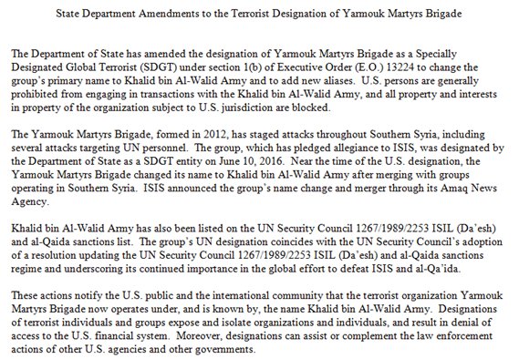 Khalid bin Al-Walid Army is openly loyal to and Abu Bakr al Baghdadi, operates in southern Syria: