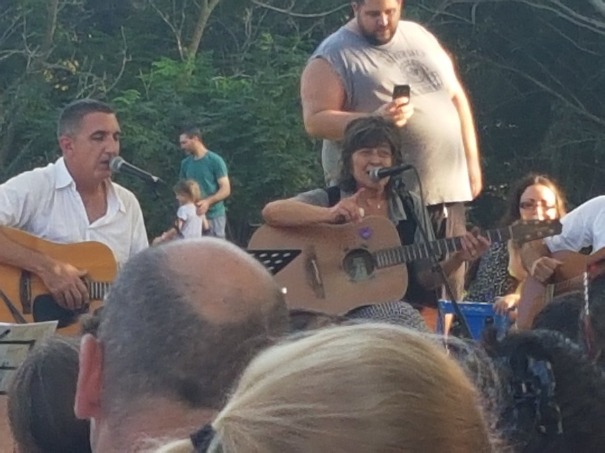 יום כיף של מאוחדת במימדיון והקיטרינג חופשי. הילדה מחזיקה שניצל ביד אחת, לימונדה בשניה ואומרת, "אך אלה החיים"
